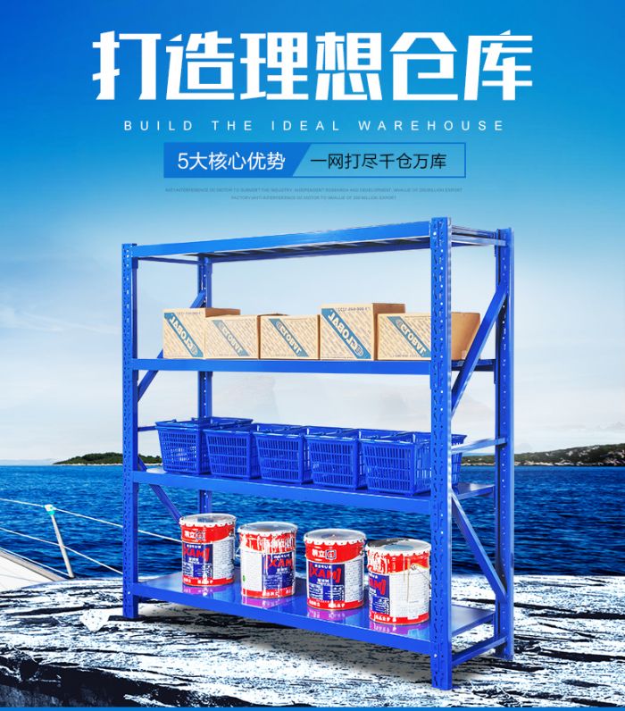 中型貨架主要適應(yīng)存放貨物較輕的倉庫,中型貨架每層承重為200-500kg。