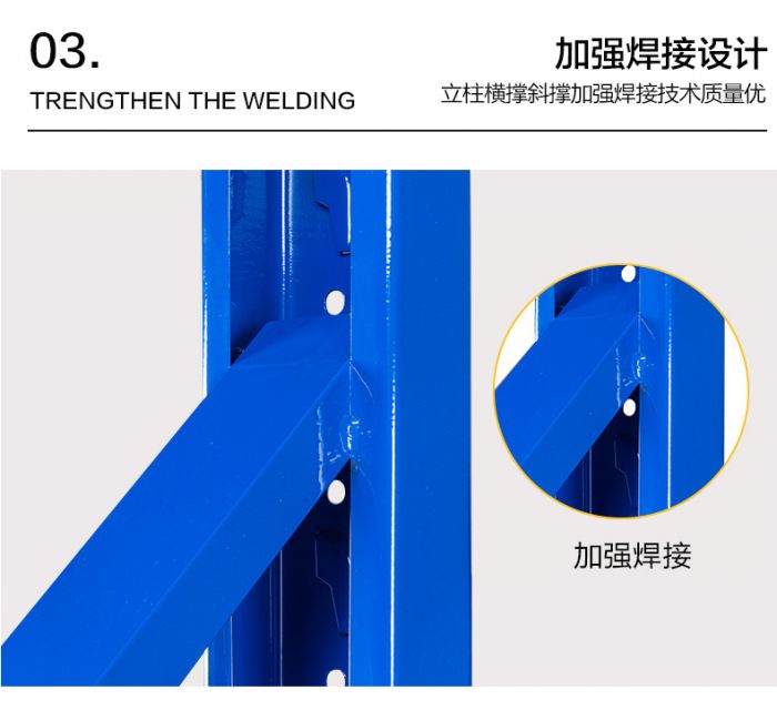 1、貨架立柱是由冷軋鋼板經(jīng)專用冷彎成型機(jī)組滾軋成型,立柱正面沖雙排孔,孔距離以50mm距離沿直線排列,立柱孔用來掛接橫梁之用;兩根立柱相對,中間有橫向連接管與傾斜連接管將兩根立柱組裝成貨架 標(biāo)準(zhǔn)中型貨架的立柱片。
